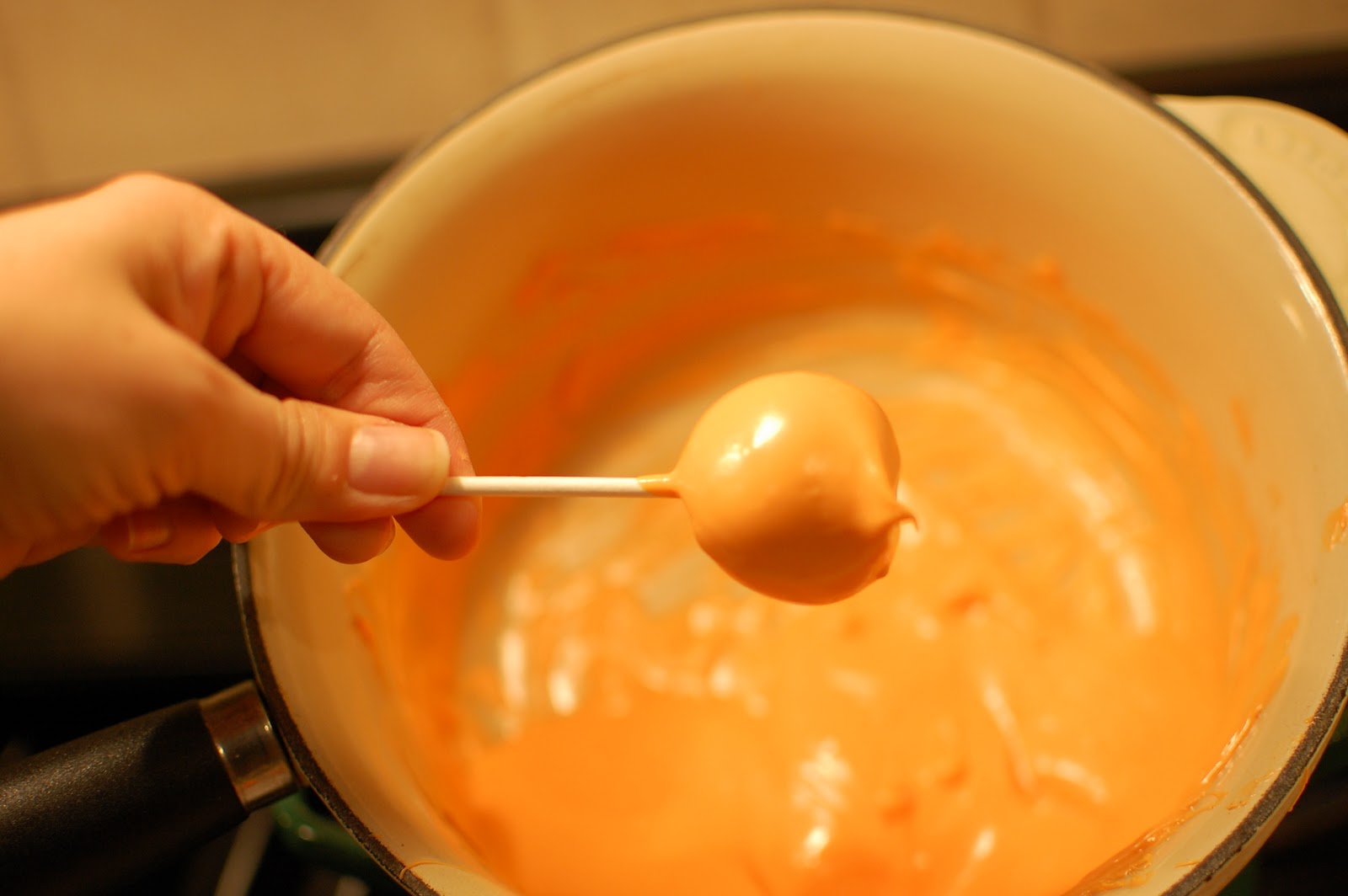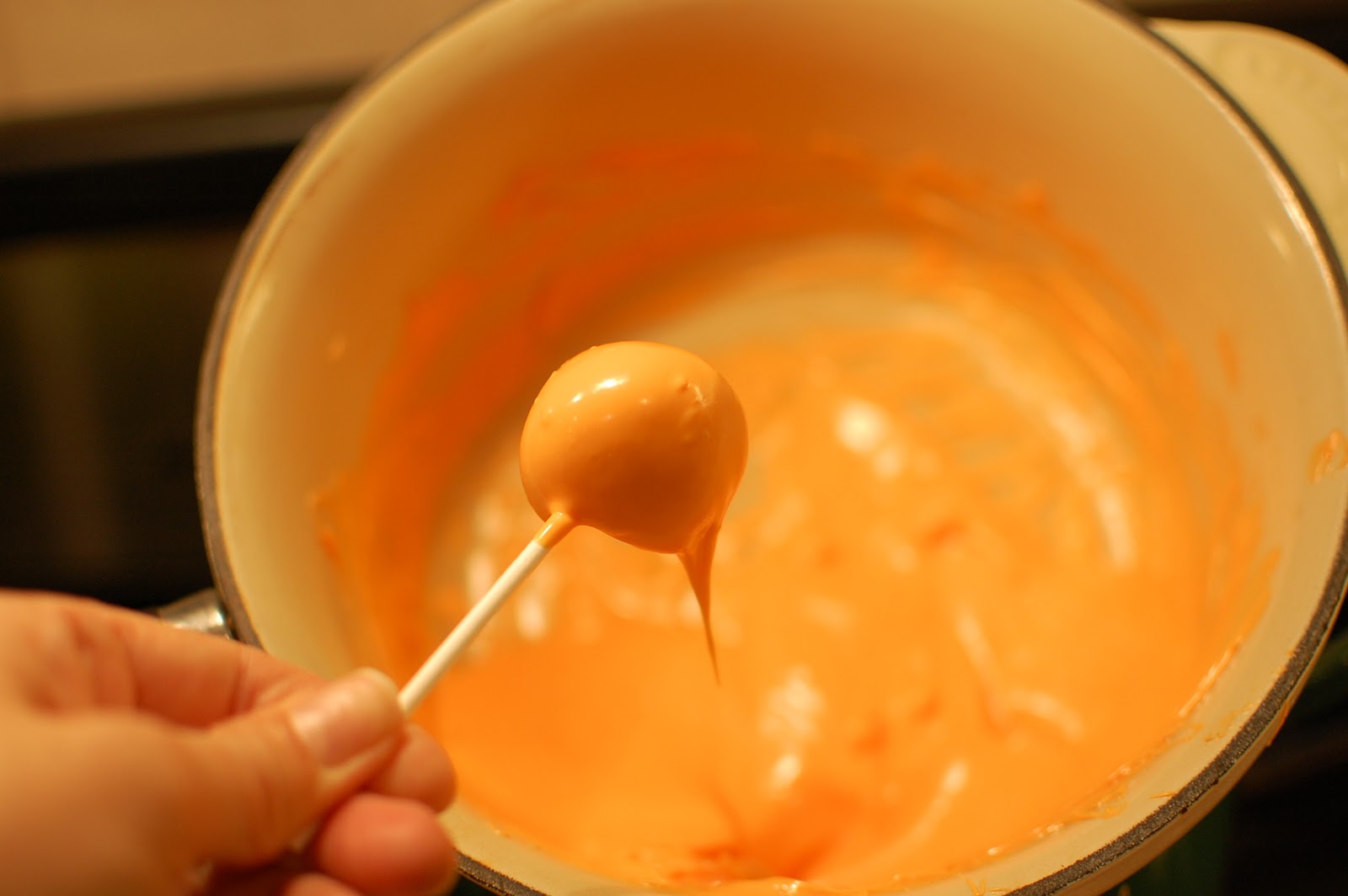 Also, I made some cake pops last spring (inspired by an orange on a tea cup) that could easily double as pumpkins. Here is how I made them! But first, check out Bakerella and her video here: