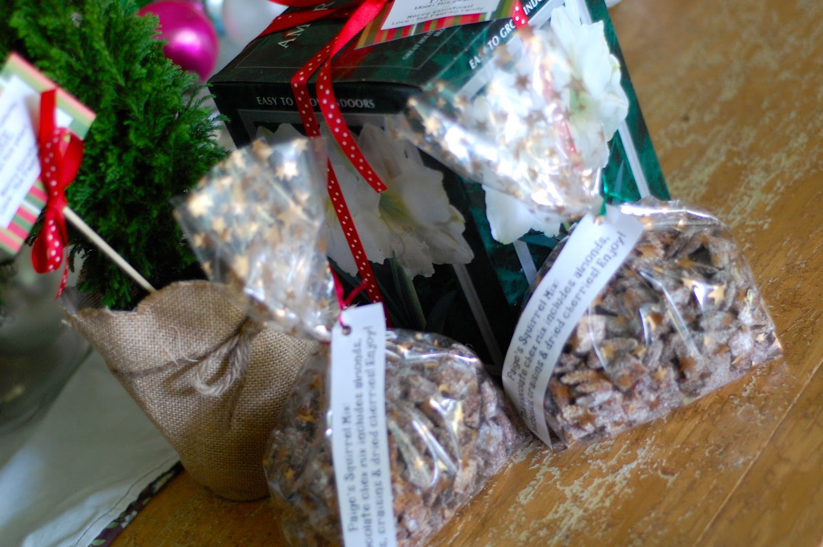 Here are a few some-what HOME-MADE gift ideas! They would be great for friends, Sunday-school teachers or even neighbors! But let’s talk teachers for a moment! Don’t our kid’s precious teachers deserve the best? They are so wonderful and do so much for our kids. It never seems like enough to give them a small little gift during the holidays…but I always hope to do at least something beyond thanking them almost everyday in person! When Paige was just 3 and in her first preschool class I adored her teachers! That year I decorated a small Christmas tree for her teacher that lived in the country and would potentially plant it! It was somewhat personal and cute! For her “gardening-loving” teacher I gave a kit to “grow your own” amaryllis plant in the hopes that she would actually use it! I simply attached a cute tag to both packages that said “Thank you for helping Paige BLOOM this year” and included some home-made goodies for them to munch on (see below). If I were to do it over again I would change the word BLOOM to BLOSSOM or GROW. But even now I still like how it turned out and hope they did too!