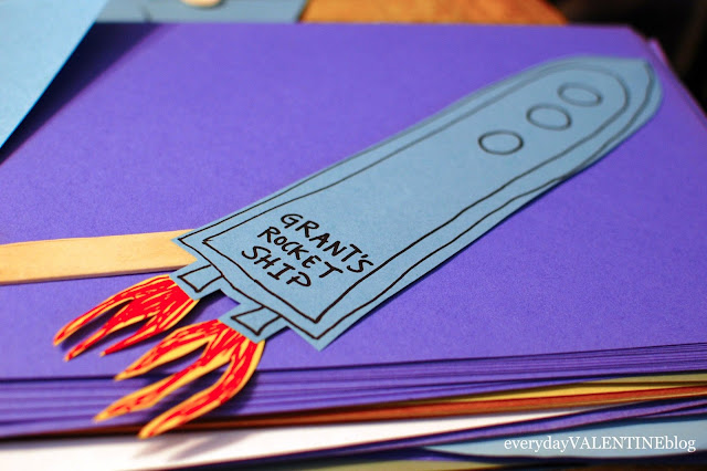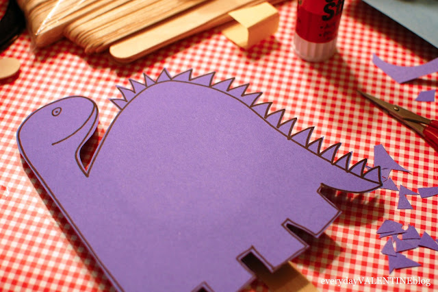 This was my first dinosaur drawing…um…I’m not sure which part is the head…but as soon as I looked online under “dinosaur drawing” I was able to re-create this cute blue one instead {below}! To make him stand out a little I added an empty ribbon spool before I glued the popsicle stick to the back.