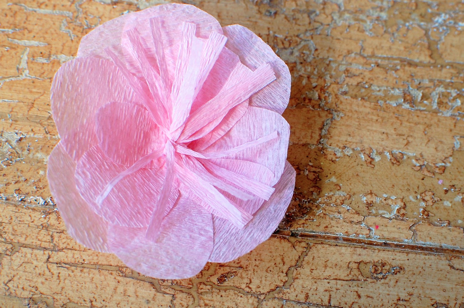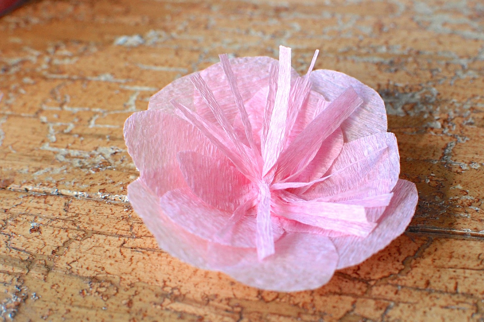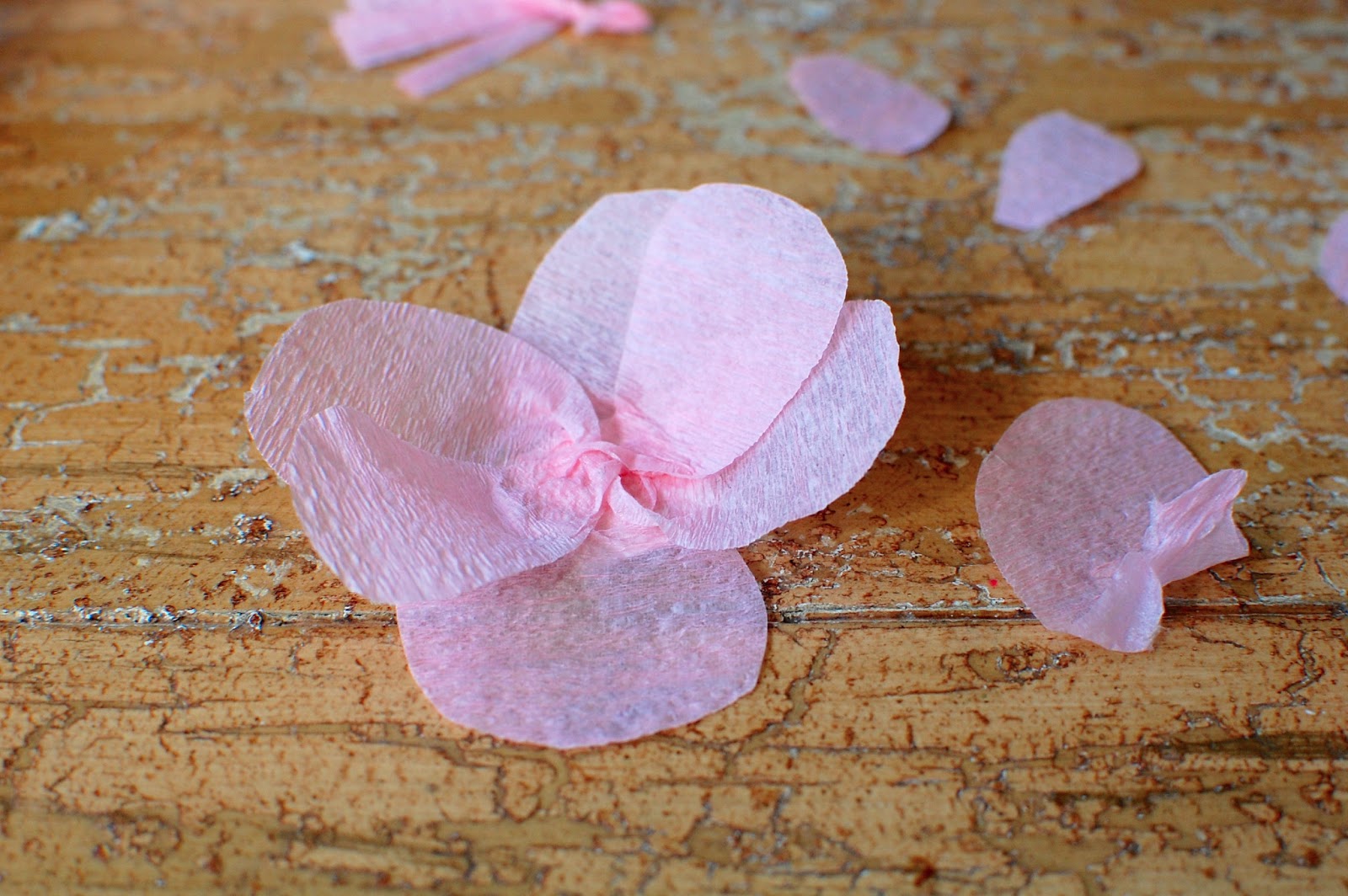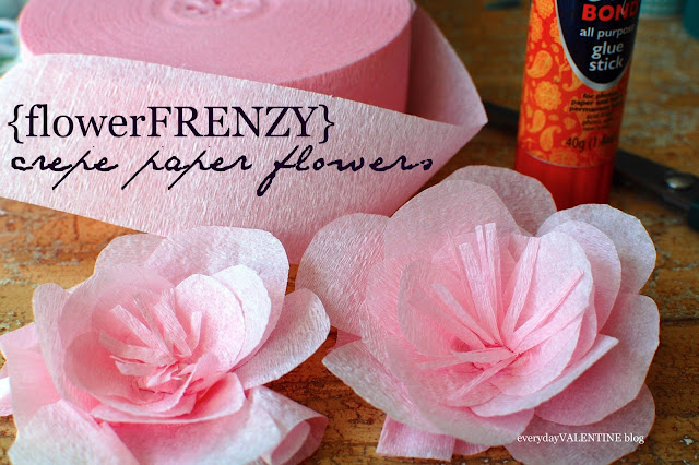 I’m in love with real flowers. I’m in love with hand-made flowers. I have a huge board of pins on a Pinterest board that I named flower FRENZY…check it out HERE. My mom and her mom and her sisters are amazing gardeners who seem to know the names of every flower in the world. I have spent many outings with one or all of them at gardens or nursery’s {for fun}. So now that the flowers of this earth seem to be blooming all around us I decided to bring some of the outdoors in. Here are a few quick crepe-paper beauties that I made in about 10 minutes or so.