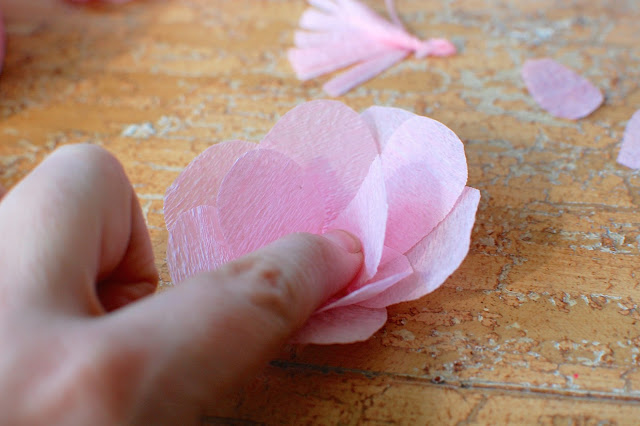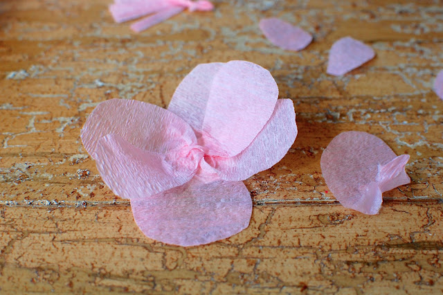 After you cut out all the petals simply glue, twist and arrange them into a flower {see steps below}!