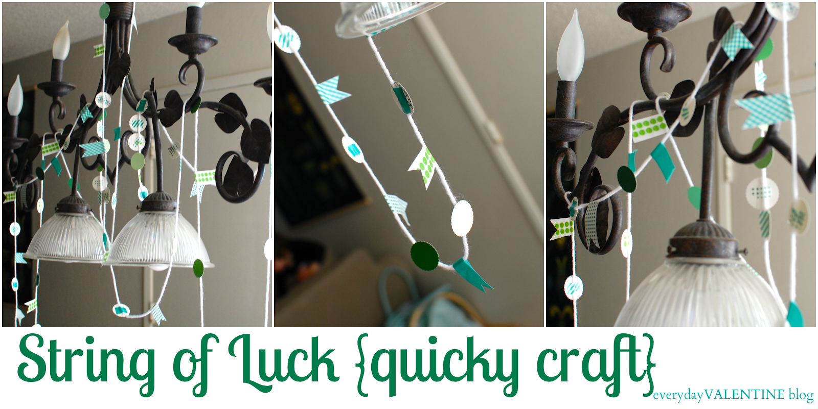 I don’t have any St. Patrick’s Day decorations. It’s always fun for us to eat Corned Beef {something I don’t care for but make for my husband once a year}, wear green and listen to Irish music but it’s just not something we celebrate in a huge way around here. However, I wanted to create something green and cute to make that day{and our fun dinner} more special. Some time ago I came across a few cute little projects HERE @ the nesting place and they sort of stuck with me. I was inspired to make my own twist on these projects using just four materials and little bit of my time, on a Saturday afternoon. This is what I came up with.