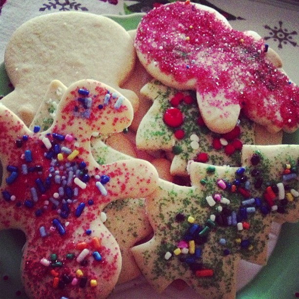My mother-in-law makes these often with the kids. This is the best sugar cookie recipe that I’ve come across! I’ve made them many times over the years and for different holidays. Even my sweet friend Courtney uses this recipe to make cookies for her friends every December. She is someone who bakes and loves sweets more than me- so she’s a trustworthy source. The recipe can be made right away or chilled and I think the almond extract is what gives these cookies their special twist.